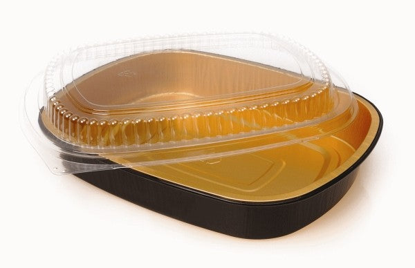 Black & Gold Aluminum Foil Take-Out Containers. These pans are available in black and gold, as well as the new Silver Series. They are great for an upscale food presentation. HFA Gourmet-To-Go® and Durable Black Diamond containers, premium quality pans.